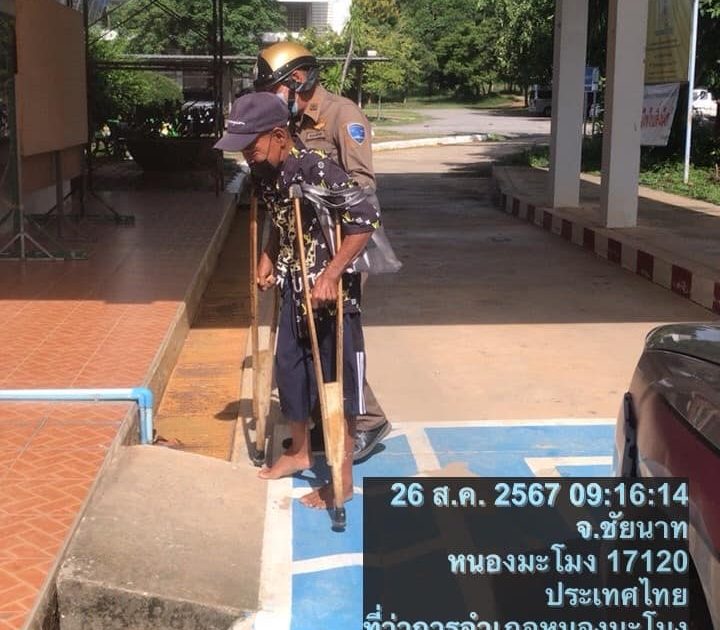 วันนี้ ( 26 ส.ค.2567) เวลา 09.16 น. ร.ต.อ.สังคม บ้านสระ รอง สว.(ป.)ฯ ร้อยเวร 20 พร้อมสายตรวจ ว.4 ตรวจป้องกันเหตุ ณ ที่ว่าการอำเภอหนองมะโมง พบผู้พิการทางขาเดินทางมารับการบริการ จึงได้ให้การช่วยเหลือประคองให้เดินขึ้นที่ว่าการอำเภอด้วยความปลอดภัย