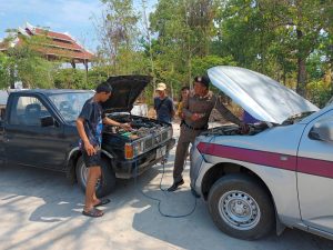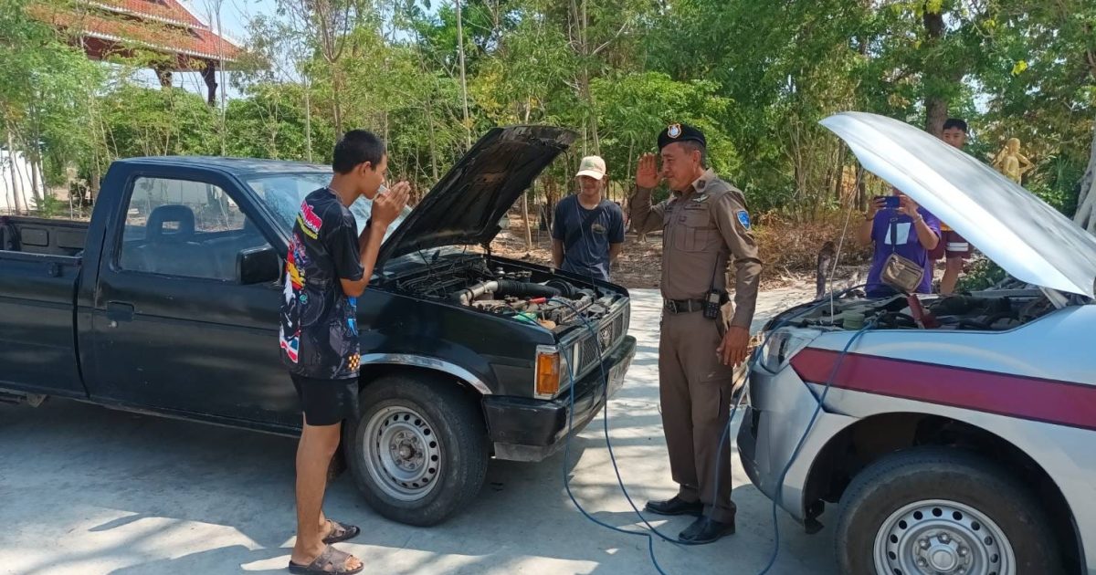 วันนี้( 8 พ.ค. 67) เวลา 09.55 น. ร.ต.ท.ปรีชา นิลฉ่ำ ปฏิบัติหน้าที่ร้อยเวร 20 พร้อมกำลัง ได้รับแจ้งเหตุ รถยนต์สตาร์ทไม่ติด บริเวณวัดหนองขนาก ต.กุดจอก อ.หนองมะโมง จ.ชัยนาท จึงได้เดินทางไปยังที่เกิดเหตุ และทำการนำสายพ่วงแบตเตอรี่มาทำการชาร์จไฟให้ สามารถสตาร์ทรถติดแล้วเดินทางต่อไปได้