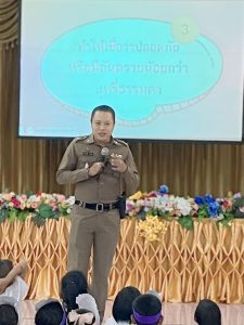 วันนี้(26 มิ.ย.67) เวลา 11.30 น. ภายใต้การนำของ พ.ต.อ.ธนะเมศฐ์ วิจิตรจริยา ผกก.สภ.หนองมะโมง มอบหมายให้ พ.ต.ต.สุรเชษฐ์ เรืองรุ่ง สวป.สภ.หนองมะโมง พร้อมด้วย ด.ต.ชานนท์ เคนทอง ผบ.หมู่(ป.) สภ.หนองมะโมง และ ส.ต.ต.อลงกรณ์ เอี่ยมศิริ ผบ.หมู่(ป.) สภ.หนองมะโมง เป็นวิทยากรในการบรรยายให้ความรู้เกี่ยวกับ ยาเสพติด กฎหมายจราจร และอาชญากรรมทางเทคโนโลยี ณ โรงเรียนวัดเขาดิน ต.หนองมะโมง อ.หนองมะโมง จ.ชัยนาท