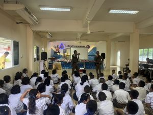 วันนี้ ( 13 มิถุนายน 2567) เวลา 14.00 น. ภายใต้การนำของ พ.ต.อ.ธนะเมศฐ์ วิจิตรจริยา ผกก.สภ.หนองมะโมง มอบหมายให้ พ.ต.ต.สุรเชษฐ์ เรืองรุ่ง สว.(ป.)สภ.หนองมะโมง พร้อมข้าราชการตำรวจชุดจราจร ครูเเดร์ อบรมให้ความรู้กับนักเรียน ในหัวข้อของกฎหมายเกี่ยวข้องกับยาเสพติด กฎหมายจราจร และความรู้ในการป้องกันตนเองจากมิจฉาชีพออนไลน์ ณ โรงเรียนบ้านหนองตะขบ ต.หนองมะโมง อ.หนองมะโมง จ.ชัยนาท