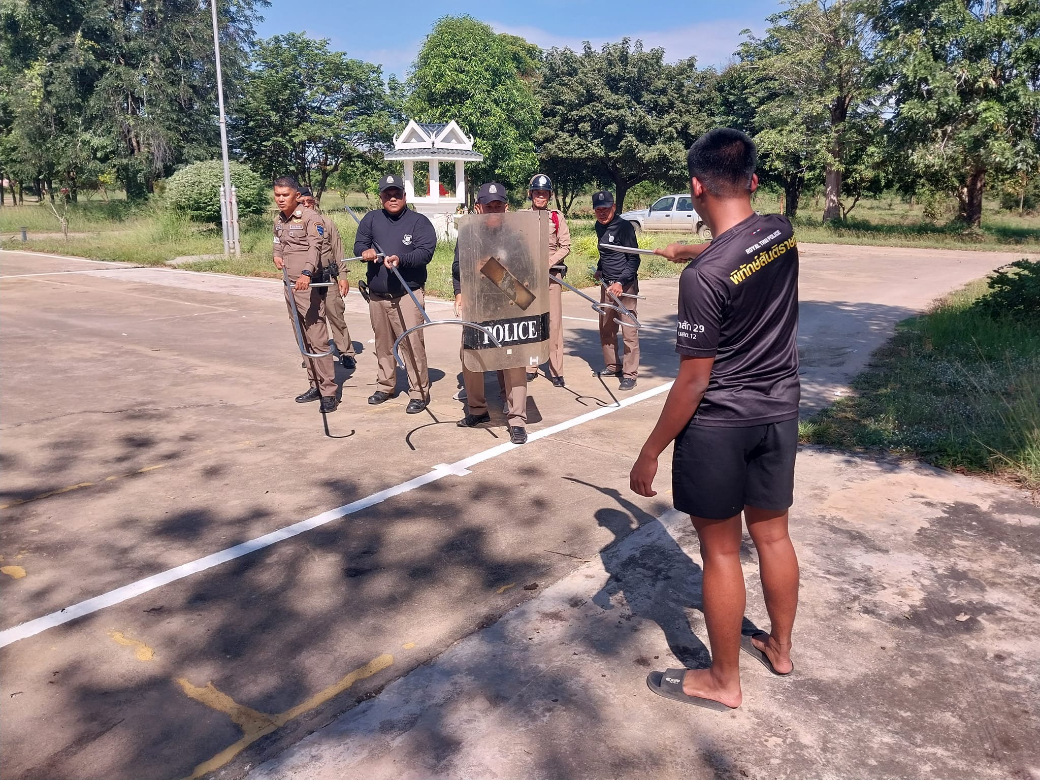 ซักซ้อมแผนเผชิญเหตุคนคุ้มคลั่งบุกใช้อาวุธมีดในสถานศึกษา