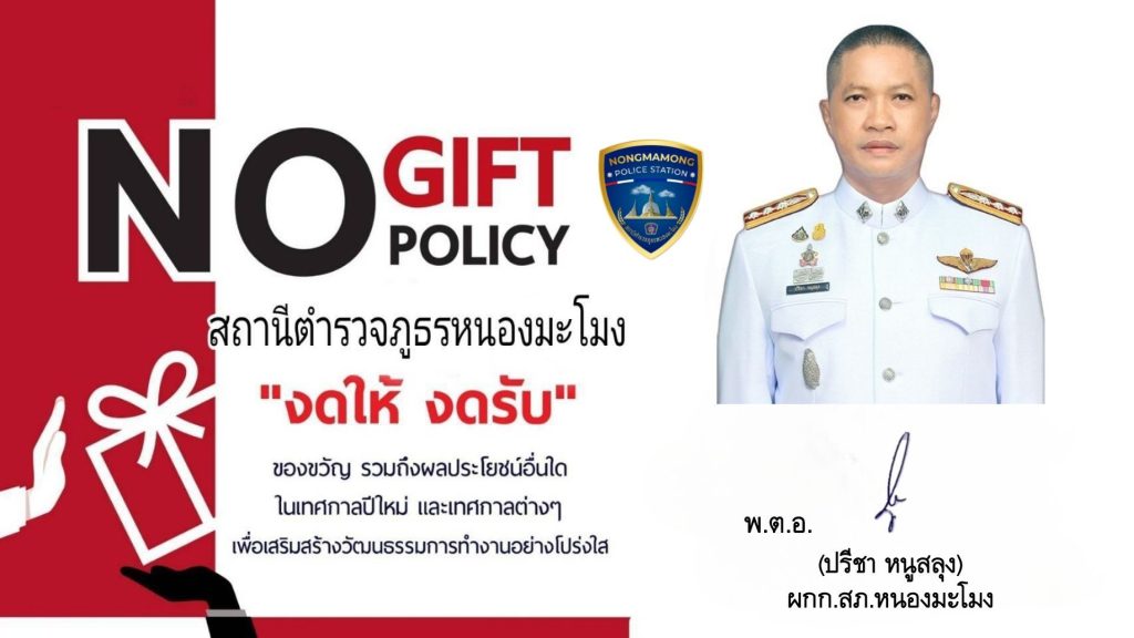 สภ.หนองมะโมง ขอแสดงอินโฟกราฟิก นโยบาย ไม่รับของขวัญและของกำนัลทุกชนิด (์No Gift Policy) จากการปฏิบัติหน้าที่