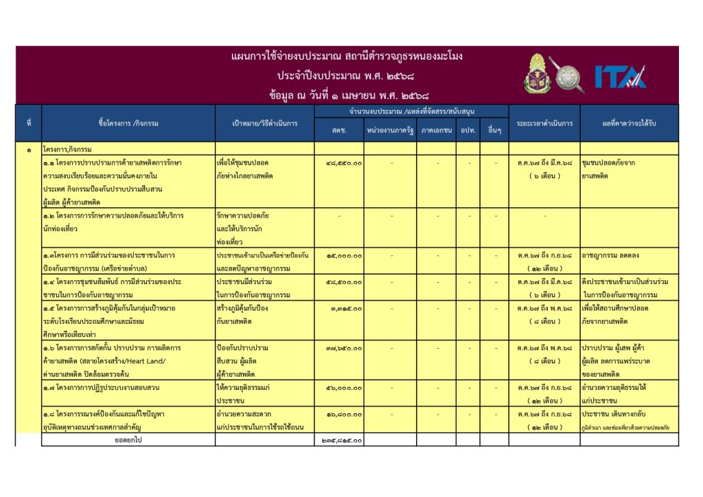 แผนการใช้จ่ายงบประมาณ ของ สภ.หนองมะโมง ประจำปี 2568