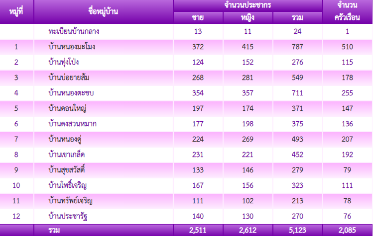 จำนวนครัวเรือนทั้งสิ้น 5,070 หลังคาเรือน