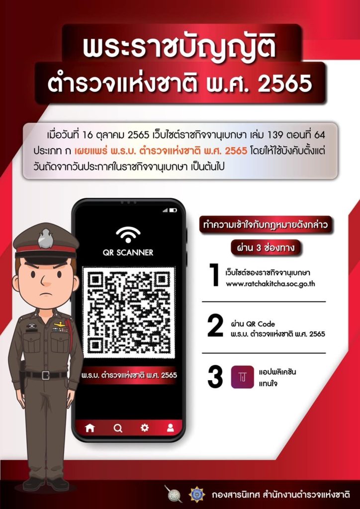 - คำสั่ง ตร.ที่ 551/2566 เรื่อง การบันทึกภาพและเสียงในขณะจับและควบคุมตัว การบันทึกข้อมูลเกี่ยวกับผุ้ถูกควบคุมการเเจ้งกรณีที่ผุ้ถูกควบคุมตัวถึงแก่ความตาย และการเเจ้งเหตุแห่งคดีให้พนักงานอัยการทราบ ตาม พรบ.ป้องกันและปราบปรามการทรมานและการกระทำให้บุคคลสูญหาย พ.ศ.2565