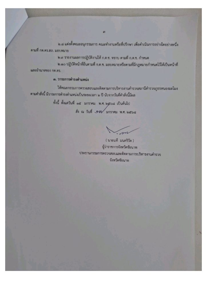 คำสั่ง แต่งตั้งคณะกรรมการตรวจสอบและติดตามการบริหารงานตำรวจสถานีตำรวจภูธรหนองมะโมง