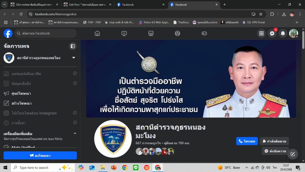 สภ.หนองมะโมง ภ.จว.ชัยนาท เรียนผู้บังคับบัญชา ***************** วันนี้ 4 เมษายน 2568 เวลา 09:30 น. ภา